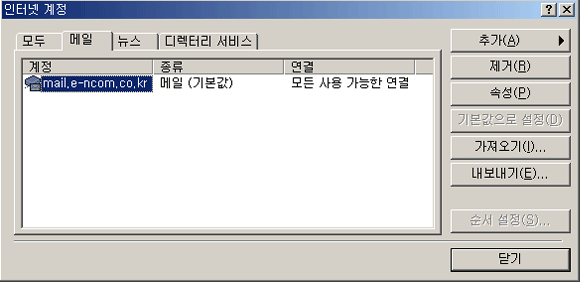 (아웃룩 익스프레스 실행 -> 도구 -> 계정 클릭)