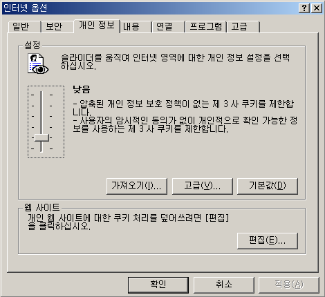 2. 개인정보 - 설정 - 낮음으로 설정한다